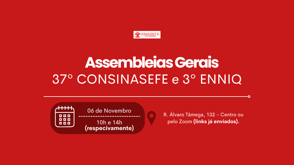 37º CONSINASEFE e 3º ENNIQ: Assembleias para eleição de delegados (as) acontecem amanhã (07/11)